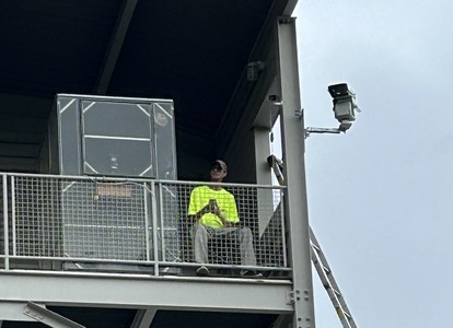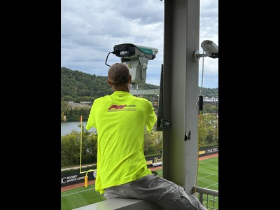 Professional Laser Bird Deterrent Mounted at the Stealers Stadium, Protecting the Facility's Upper Deck and Seating Areas.